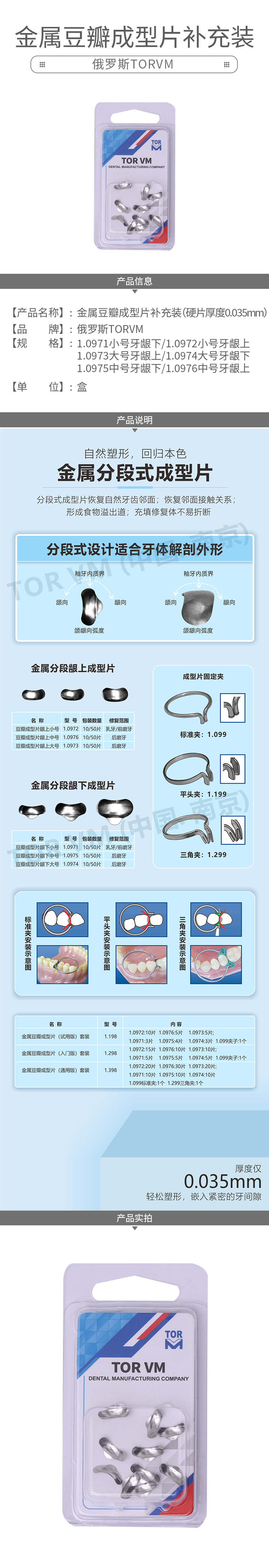 俄罗斯TORVM 前牙金属成型片单邻面/双邻面12*1