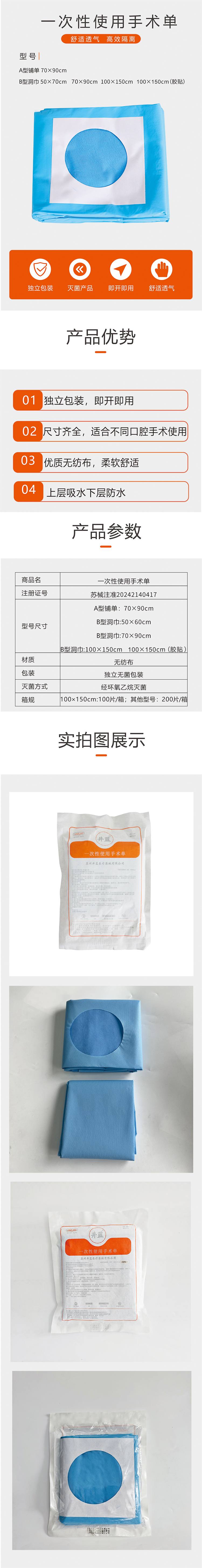 井蓝 一次性使用手术单/洞巾