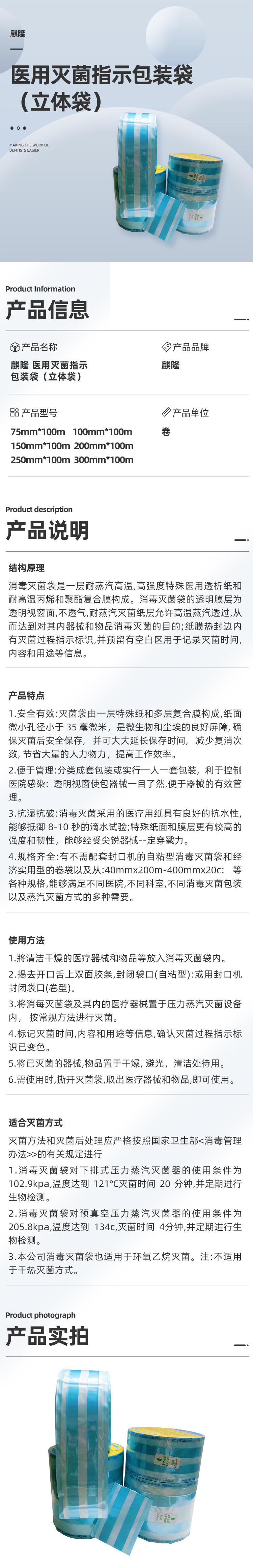 麒隆 医用灭菌袋/封口袋/打包纸