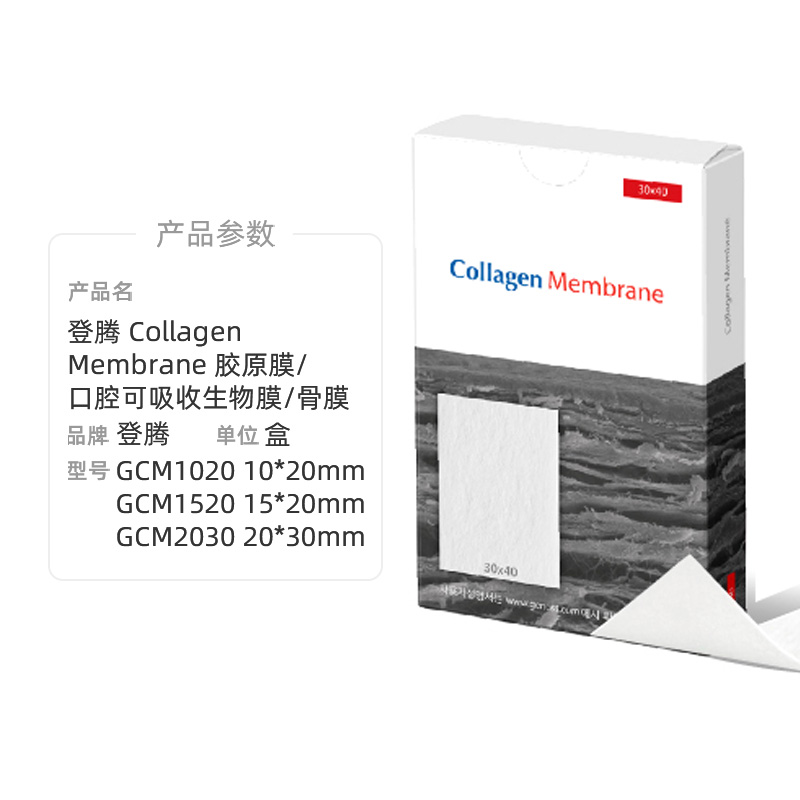 时间:2025.10.14~10.31 买2送1 送:登腾 Collagen Membrane 胶原膜/口腔可吸收生物膜/骨膜 规格: [GCM1020 10*20mm] ×1 可叠加