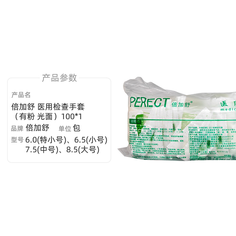 倍加舒 医用检查手套(有粉 光面)100*1