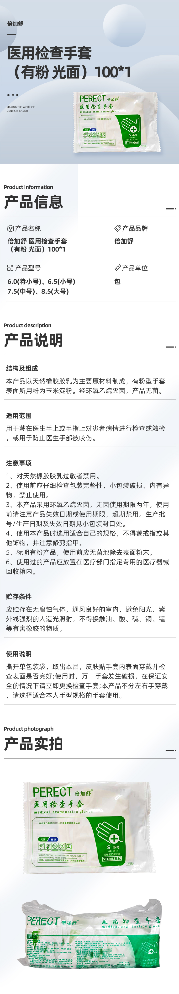倍加舒 一次性使用医用橡胶外科手套100*1