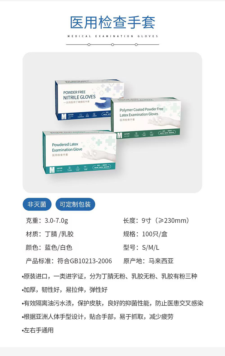 叁艾思3S 一次性医用乳胶检查手套(无粉 麻面)100*1