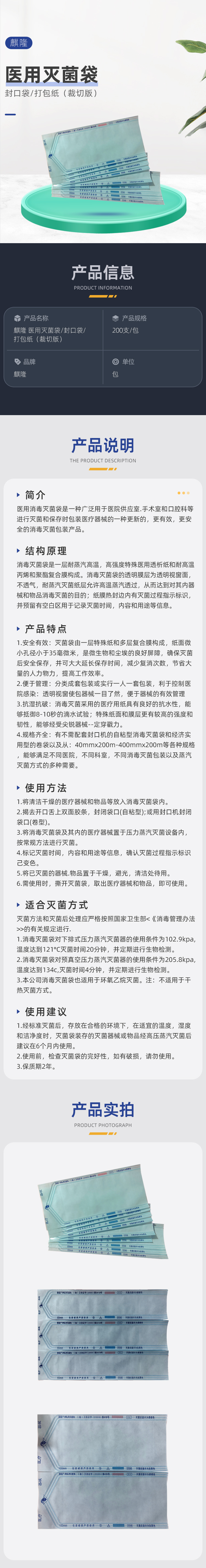 麒隆 医用灭菌袋/封口袋/打包纸