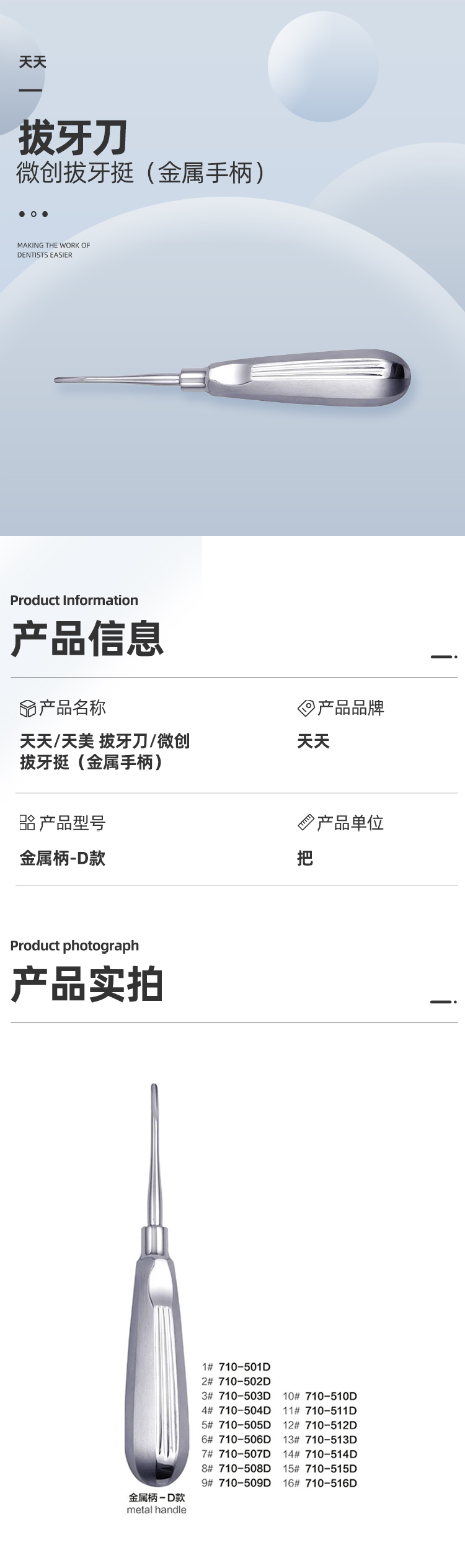 天天/天美 拔牙刀/微创拔牙挺(金属手柄)
