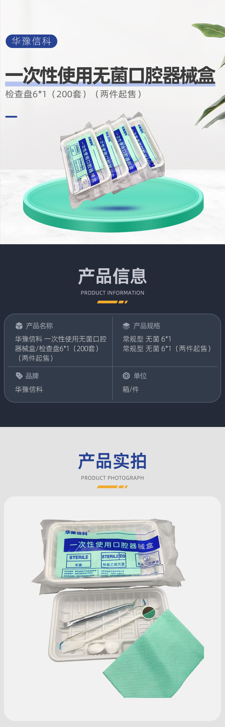 华豫信科 一次性使用无菌口腔器械盒/检查盘6*1(200套)(两件起售)