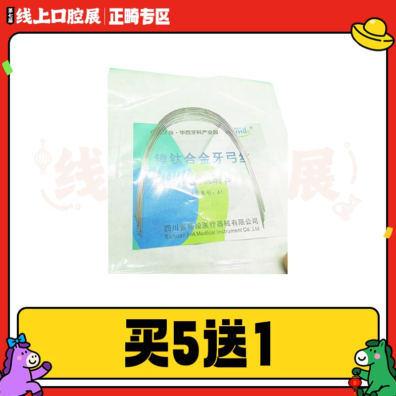 时间:2026.02.23~03.31 买5送1 送:中国牙谷菲娅 超弹型镍钛圆丝弓(卵圆)盒装10*1 规格: [0.014上] ×1 可叠加