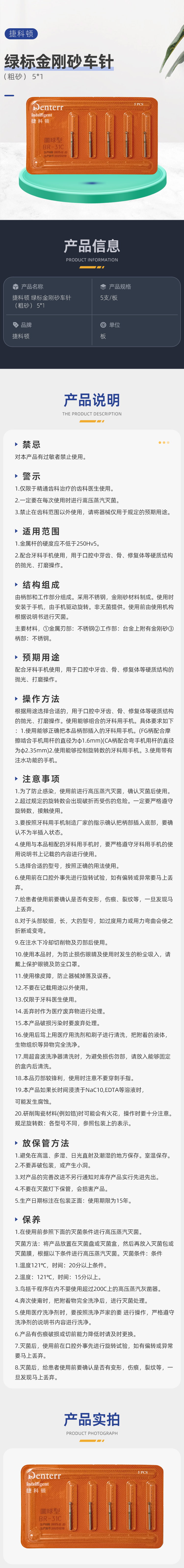 捷科顿 绿标金刚砂车针(粗砂) 5*1【德国进口】